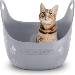Litter Genie Cat Litter Box | Portable, Open, High Sided Cat Litter Box with Handles | Flexible Plastic Litter Box | Comfortable, Easy-Clean Cat Box