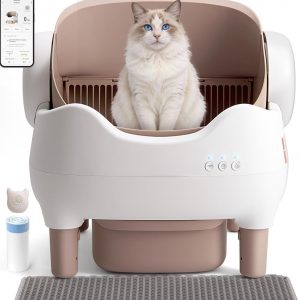 Self Cleaning Cat Litter Box: Automatic Cat Litter Box for Multiple Cats, Large Capacity with App Control, Safety Protection, Open-Top, Includes Waste Bags & Mat